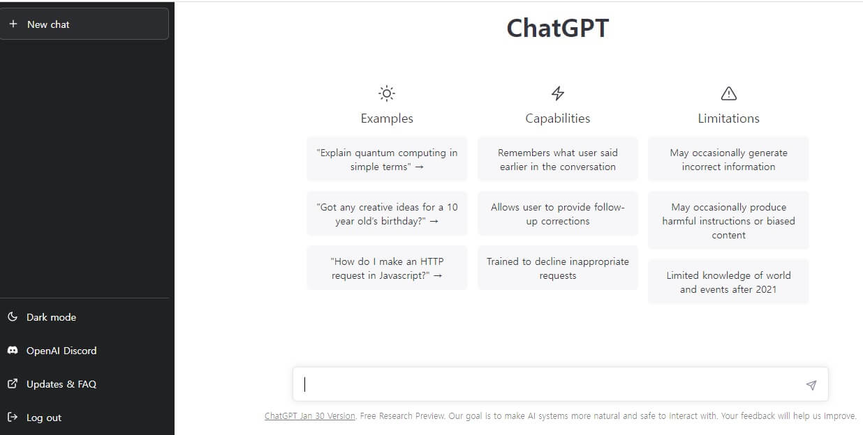 ChatGPT 초기 화면