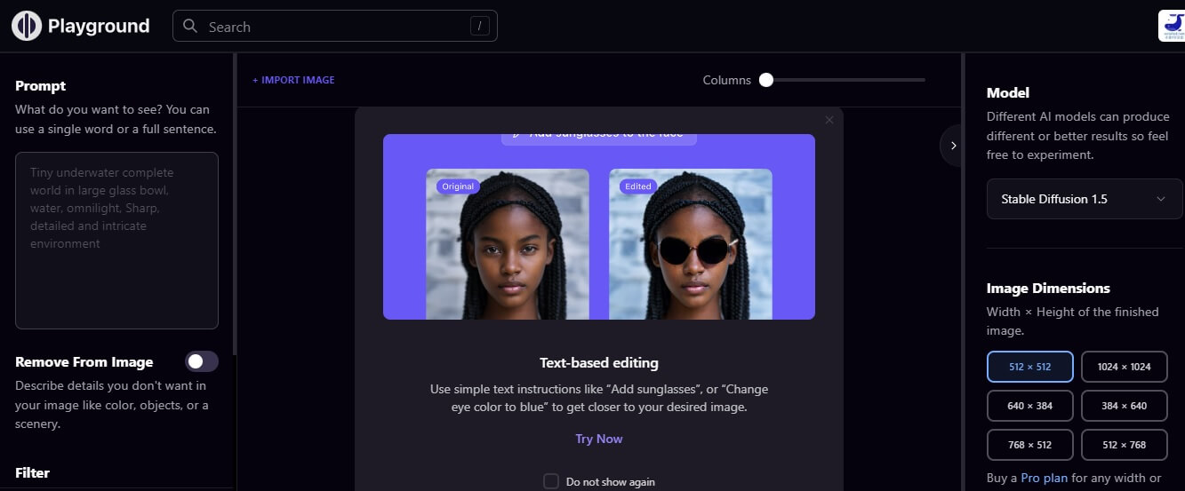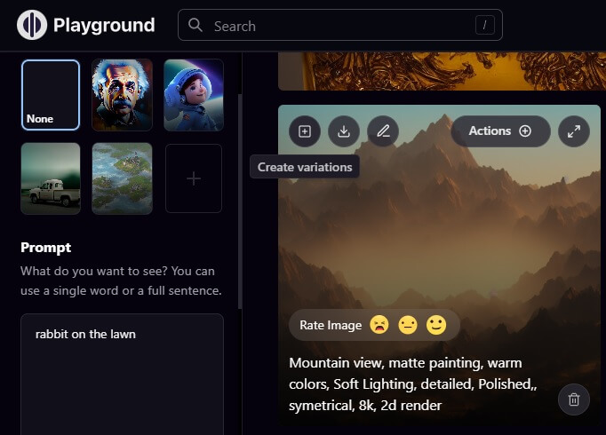 오른쪽을 보면 플레이그라운드AI가 운영하는 세 가지 모델 중에 선택할 수 있습니다.