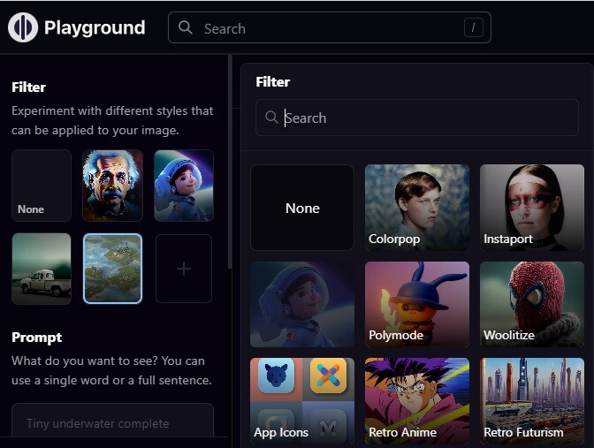다음은 플레이그라운드AI의 재미있고도 유용한 기능인 필터를 이용해서 이미지들을 생성해보겠습니다.